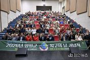 정안뉴스 안정주 기자 | 양평군은 지난 22일 생활문화센터 양평씨어터에서 제56회 세계지구의 날 기념식을 개최했다. 세계지구의 날은 매년 4월 22일을 전후로 ‘기후변화주간’을 운영하며 기후행동 참여를 유도하기 위해 지정된 기념일이다. 양평군은 기념식과 함께 기후교육, 기후정책 홍보공간 운영, 전 군민 소등 행사 등을 추진했다. 이날 기념식에서는 탄소중립 유공자 표창(사회적협동조합 다울숲, 일자리경제과 김경일 주무관)을 비롯해 전 군민 10분 소등에 따른 전력 절감량과 온실가스 감축 효과를 시각적으로 보여주는 퍼포먼스와 영상 시청이 진행됐다. 또한 ‘한국 사회와 기후변화’를 주제로 오충현 동국대학교 교수의 강연이 이어졌다. 특히 양평군민의 10분 소등 실천으로 5,260kW의 전력이 절감되고 2.51톤의 온실가스가 감축되며, 이는 10년산 소나무 2,512그루를 심은 것과 같은 효과에 해당한다. 군은 이러한 내용을 담은 퍼포먼스를 통해 이날 행사에 참석한 12개 읍면 이장협의회장과 새마을회 회원, 일반 주민 등에게 개인의 작은 실천이 가져오는 에너지 절약과 온실가스 감축 효과를 시각적으로 전달했다.