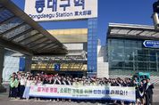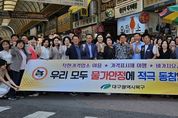 정안뉴스 안정주 기자 | 대구 동구청은 지난 1일, 동대구역 광장 일원에서 민족고유의 명절인 추석을 맞아 안전하고 편안한 귀성길을 위한 ‘추석맞이 교통안전 캠페인’을 실시했다. 대구시를 비롯해 동부경찰서, 교통봉사단체 60여명이 참여한 가운데 △전 좌석 안전띠 착용 △안전속도 및 신호 준수 △음주운전 금지 △졸음운전 예방 등 교통안전 수칙과 선진 교통문화 정착을 위한 홍보활동을 전개했다. 한편, 동구청은 추석 연휴기간 특별교통대책을 수립하여 교통상황실 운영, 공영주차장 무료개방, 전통시장 주변 불법주정차 단속완화, 자전거 수리센터 운영 등으로 귀성객과 주민들의 불편함이 없도록 최선을 다할 예정이다. 윤석준 동구청장은 “이번 추석은 예년에 비해 연휴기간이 길어 귀성객과 나들이객으로 교통이 혼잡할 것으로 예상되기에, 가족과 함께하는 안전하고 따뜻한 명절이 될 수 있도록 모두가 교통 안전수칙을 반드시 준수해달라”고 말했다.