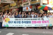 정안뉴스 안정주 기자 | 대구 북구청은 민족 고유 명절인 추석을 앞두고 10월 1일 14시 30분부터 팔달신시장에서 구청장과 간부공무원 등 50여 명이 참여하여 장보기 행사를 가졌다. 해마다 명절이면 온라인 쇼핑몰, 대규모 유통업체 등 이용으로 위축된 전통시장에 활력을 불어넣고자 장보기 행사를 개최했다. 이날 장보기 행사에는 배광식 북구청장을 비롯한 구청 실·과장 이상 간부공무원과 참여 희망 직원 등 50여 명이 자율적으로 참여하여 전통시장 곳곳을 돌며 제수용품과 다양한 먹거리를 구입하면서 각 상인들과는 전통시장의 상황 등을 소통하고, 시장을 찾는 주민들에게는 온누리상품권 환급행사와 시장 홍보 활동도 병행했다. 배광식 북구청장은 “추석을 맞이하여 물가상승과 경기침체로 어려움을 겪고 있는 전통시장에 활력을 불어넣고 상인들에게 조금이라도 도움이 되고자 장보기 행사를 마련했다.”며, “이번 행사를 계기로 더 많은 주민들이 전통시장을 이용하고, 추석 연휴 동안 가족들과 즐거운 명절을 보내시길 바란다.”고 전했다.