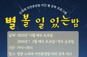 정안뉴스 김재홍 기자 | 경남 밀양시는 오는 12월 6일부터 도래재 자연휴양림에서 동절기 야간 별 관측 프로그램 ‘별 볼 일 있는 밤’을 운영한다. 이번 프로그램은 지난해와 마찬가지로 밀양아리랑우주천문대의 ‘찾아가는 천문대’와 연계해 내년 2월까지 진행된다. ‘별 볼 일 있는 밤’은 겨울철 청명한 야간 환경을 활용한 천체 관측 프로그램이다. 2023년 1월 245명을 시작으로 2024년 12월 117명, 2025년 1~2월 200명 등 꾸준한 참여를 기록하며 많은 관심을 받고 있다. 프로그램은 도래재 자연휴양림 전망데크 또는 목공예센터 2층에서 열린다. 올해 12월에는 매주 토요일 오후 7시, 7시 30분, 8시 등 총 3회 차로 운영된다. 각 회차는 약 20분간 진행되며, 회당 정원은 20명이다. 2026년 1월과 2월에는 매주 토요일 운영 외에도 격주 금요일 프로그램을 추가 운영해 참여 기회를 확대할 계획이다. 휴양림 숙박객과 밀양시민은 무료이며, 그 외는 체험료 2,000원을 현장에서 납부하면 참여할 수 있다. 참여 신청은 프로그램