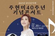 정안뉴스 황도연 기자 | 예산군문예회관은 2025년 송년을 맞아 오는 12월 20일 오후 7시 ‘트롯 여제’ 주현미의 데뷔 40주년을 기념하는 콘서트를 개최한다. 군은 대한민국 대표 트롯 가수인 주현미의 공연을 통해 다사다난했던 한 해를 마무리하고 군민들이 함께 소통하는 자리를 마련했다. 특히 이번 공연은 KBS관현악단 박상현 단장이 이끄는 ‘모스틀리 필하모닉 오케스트라’가 함께해 더욱 웅장하고 감동적인 무대를 선사할 예정이다. 남녀노소 온 가족이 함께 즐길 수 있는 이번 공연의 관람료는 1층 2만원, 2층 1만5000원이며, 예매는 12월 8일 오전 9시부터 인터넷, 전화, 현장 방문을 통해 할 수 있다. 공연과 관련한 자세한 사항은 군청 누리집 또는 전화(041-339-8211∼4)로 확인할 수 있다.
