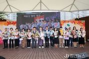 정안뉴스 안정주 기자 | 서울 동대문구는 26일 배봉산근린공원 열린광장에서 ‘제34회 동대문구민의 날’ 기념행사를 성황리에 개최했다고 밝혔다. 이날 행사에는 이필형 동대문구청장을 비롯해 시‧구의원, 기관장·단체장, 구민 등 약 500여 명이 참석하여 지역에 대한 긍지와 애착심을 높이고 구민 화합의 장을 마련했다. 또한 경희대‧한국외대‧시립대 총학생회장이 구민의 날 기념행사에 최초로 참석하며 의미를 더했다. 식전 행사로 자매결연지의 축하 영상와 각 분야에서 헌신‧봉사하며 지역사회에 귀감이 되고 있는 ‘제34회 구민상 수상자’의 인터뷰 영상 상영 후 본격적인 기념식이 시작됐다. 본 행사에서는 구민상 수상자 14명에 대한 시상식과 참석 내빈들의 축사가 진행됐다. 기념식 이후에는 동대문문화원 주최로 ‘한가위 구민 한마음 민속 큰잔치’가 열렸다. 송편빚기대회, 전통민속놀이 체험, 구민 노래자랑이 등이 진행돼 전통의 가치를 나누고 화합하는 시간을 가졌다. 이필형 동대문구청장은 “동대문구의 변화와 성과는 구민 여러분이 함께했기에 가능했다.”라며 “앞으로도 구민 모두가 자부심을 느끼는 동대문구를 만들어가기 위해