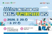 정안뉴스 안정주 기자 | 대구 달성군은 2026년 주민제안사업을 2월 20일부터 3월 27일까지 공모한다고 밝혔다. 주민참여예산제는 예산 편성 과정에서 주민들의 참여를 보장하고, 실제로 주민들이 원하는 사업을 정책에 반영하여 재정 운영의 투명성과 민주성을 높이기 위한 제도다. 달성군에 주민등록을 둔 주민이나 군 소재 기관, 단체, 기업, 학교에 소속된 누구나 제안에 참여할 수 있다. 공모 유형은 3가지로 나뉜다. ‘주민참여형’ 사업은 다수 주민이 혜택을 받을 수 있는 생활 밀착형 사업이며, ‘청소년·청년형’ 사업에는 일자리, 문화예술, 복지 등 청소년과 청년을 위한 사업이 해당된다. ‘읍면참여형’ 사업의 경우 읍면 주민을 위한 지역 특화 생활 밀착형 사업을 말한다. 예산 규모는 △주민참여형 사업 9억 5천만 원, △청소년·청년형 사업 2억 원, △읍면참여형 사업 4억 5천만 원으로, 전년도에 비해 청소년·청년형 사업 예산이 2배 확대됐다. 공모된 사업은 사업부서의 타당성 검토와 위원회의 검토, 주민투표를 거쳐 2027년 예산에 반영된다. 제안은 주민참여예산 누리집을 통해 신청하거나,