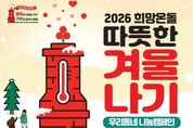 정안뉴스 안정주 기자 | #“저 좀 도와주세요, 너무 힘들어요.” 지난겨울, 한부모가정 A씨는 여러 번 망설이다 우장산동주민센터 문을 두드렸다. 뜻밖의 후원이 이어지며 다시 일어설 용기를 얻었다는 그는 “언젠가 나도 베풀 수 있는 사람이 되고 싶다”고 말했다. 서울 강서구가 오는 15일부터 내년 2월 14일까지 3개월간 ‘2026 희망온돌 따뜻한 겨울나기’ 사업을 추진한다. 이 사업은 매년 겨울, 주민과 기업, 단체가 함께 참여해 어려운 이웃을 돕는 민관 협력 나눔 캠페인이다. 올해는 ‘행복을 더하는 기부, 기부로 바꾸는 강서’를 슬로건으로 내걸고 25억 원 모금을 목표로 세웠다. 지난해보다 5억 원 늘어난 규모로, ‘기부나눔 릴레이’, ‘사랑의 저금통 마음모으기’ 등 다양한 나눔 프로그램을 통해 따뜻한 기부문화를 확산시킬 예정이다. ◆ 13일 선포식·온도탑 제막식으로 3개월간 대장정 시작 구는 본격적인 캠페인 시작에 앞서 오는 13일 오전 11시 구청 본관 1층에서 선포식과 온도탑 제막식을 개최한다. 이 자리에는 진교훈 구청장을 비롯해 서울사회복지공동모금회 관계자, 사회복