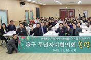 정안뉴스 안정주 기자 | 인천 중구의회는 지난 29일 율목동 커뮤니티센터에서 열린 '2025년 중구 주민자치협의회 송년회'에 참석했다. 이날 행사에는 이종호 의장, 손은비 운영총무위원장, 윤효화 예산결산특별위원장이 참석해 한 해 동안 지역사회 발전을 위해 헌신한 주민자치회장단과 사무국장 등 각 동 주민자치회 관계자들에게 감사와 격려의 뜻을 전했다. 이종호 의장은 "올 한 해 주민 가까이에서 지역 현안 해결과 주민자치 활성화를 위해 애써주신 모든 분께 깊이 감사드린다"며 "중구의회도 주민자치회가 지역 공동체의 중심 역할을 할 수 있도록 제도적 지원을 아끼지 않겠다"고 밝혔다. 한편, 중구의회는 앞으로도 주민자치협의회와 협력해 주민 중심의 지역 자치 활성화를 위해 노력한다는 계획이다.