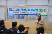 정안뉴스 안정주 기자 | 남양주시는 지난 12월 3일 다가오는 겨울철 한파로 인한 동파 및 누수 발생에 대비해, 상수도 협력업체들과 간담회를 개최했다고 밝혔다. 이날 간담회에는 수도과장, 급수팀장, 누수방지팀장 등 시청 관계자를 비롯해 상수도 급수공사를 대행하는 20개 협력업체 관계자가 참석했다. 시는 △민원 현장 관리 △작업자 안전 교육 및 안전관리 △누수복구 공사 당부사항 등을 전달했다. 이어 협력업체들의 건의사항을 청취하고, 해소 방안을 마련하는 등 상호 협력체계 강화를 위한 개선 방안을 함께 논의했다. 이와 함께 시는 한파로 인한 동파 피해를 최소화하기 위해 상수도 시설물을 사전에 점검하기로 했다. 또한 누수 등 각종 상수도 사고 발생 시에는 휴일과 야간에도 비상근무를 통해 시민 불편을 최소화하는 대응 방안도 함께 논의됐다. 김춘 수도과장은 “시민들께 안전하고 깨끗한 생활용수를 제공할 수 있도록 늘 협조해 주심에 감사드리며, 올해도 수도과와의 유기적인 협력을 통해 시민들이 보다 만족스러운 수돗물을 공급받을 수 있도록 힘써 주시기를 부탁드린다”고 전했다.