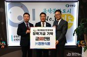정안뉴스 황은경 기자 | ㈜정원식품(대표 김훈섭)은 16일 오후 영동군청을 방문해 지역 미래 인재를 육성하기 위한 장학금 500만 원을 (재)영동군민장학회에 기탁했다. 정원식품은 국내 메추리알 판매 1위 식품기업으로, 2021년부터 장학사업을 꾸준히 이어오며 올해까지 총 2,800만 원의 장학금을 후원해 지역 교육 발전에 기여하고 있다. 김훈섭 대표는 “정원식품은 영동 지역에서 성장한 기업으로서, 지역 학생들이 다양한 분야에서 멋진 꿈을 펼칠 수 있도록 돕는 것이 향토 기업의 중요한 책임이라고 생각한다”고 밝혔다. 영동군민장학회 관계자는 “정원식품이 매년 꾸준한 기부로 지역 인재 육성에 큰 힘을 보태고 있는 영동군을 대표하는 모범 기업이며 매출 또한 올해 첫 400억 매출을 돌파할 정도로 우수기업이다”라고 말했다. 정원식품은 앞으로도 장학금뿐만 아니라 지역사회와 함께 성장하는 상생형 CSR 활동을 확대해 나갈 예정이며, 지역의 미래 주역을 키우는 데 지속적으로 동참하겠다고 밝혔다.