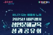 정안뉴스 안정주 기자 | 서울시평생교육진흥원은 ‘하나가 되는 배움의 노래’를 주제로 10일 13시부터 17시까지 서울시청 본청 8층 다목적홀에서 ‘2025년 서울시 성인문해교육 성과공유회’를 개최했다. 이번 행사는 성인 문해학습자들이 한 해 동안의 학습 여정에서 얻은 경험과 결실을 나누고, 새로운 배움에 대한 열망을 확인하는 장으로 마련됐다. 이번 행사는 ▲올해로 3회차를 맞은 ‘디지털 문해 골든벨’과 함께 ▲문해 음악 공연 ‘배움의 플레이리스트’ ▲서울지역 문해교육 시화전 시상식 ▲디지털 기기 체험 부스 ▲시화전 수상작 전시 ▲문해교육 체험 부스 등 문해학습자의 성과를 공유하고 학습 의욕을 높이는 다채로운 프로그램들로 구성됐다. 행사의 주요 프로그램으로 ‘디지털 문해 골든벨’이 진행됐다. 서울 지역 문해교육기관 학습자들이 참여해 기초 문해력 문제뿐 아니라 무대에 배치된 디지털 기기를 실제 활용하는 문제에 도전했다. ‘디지털 문해 골든벨’은 전반부는 기초 수준의 문해교육 문제들을 함께 풀며 서로를 격려하는 시간으로, 후반부는 무대에 디지털 기기를 실제로 배치하여 문해학습자의 디지털 기기 활용 역량을 확인하는 시간으로 구성됐