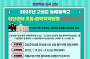 정안뉴스 김재홍 기자 | 고성군은 학력 취득을 희망하는 성인 학습자를 위한 학력인정 문해교육 프로그램인 ‘고성군 늘배움학교’의 2026학년도 입학생을 모집한다. '고성군 늘배움학교'는 2023년 고성군이 시작한 초등학력 인정 문해교육 프로그램으로, 경남도교육청의 지정을 받아 고성군이 직접 운영하며 수강료가 전액 무료인 학력 취득 평생학습 프로그램이다. 특히 2026학년도에는 기존 초등과정뿐만 아니라, 처음으로 중학학력 과정 신입생도 모집해 성인 학습자의 학력 취득 기회가 한층 넓어졌다. 모집 인원은 초등과정 20명, 중학과정 20명이다. 교육과정은 초등·중학과정 모두 3단계로 구성되며, 초등1단계 과정은 매주 3회, 회당 2시간씩 연간 총 240시간, 중학과정은 매주 3회, 회당 4시간씩 연간 총 450시간으로 운영된다. 출석률이 3분의 2 이상일 경우 다음 단계로 진입할 수 있으며, 3년간의 과정 이수 후 교육감으로부터 초등학력과 중학학력을 인정받게 된다. 입학생 모집기간은 1월 14일부터 2월 6일까지이고. 고성군에 주소를 두고 초등·중학 학력 취득을 희망하는 성인이라면