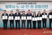 정안뉴스 황은경 기자 | 청주시 노사민정협의회는 16일 임시청사 대회의실에서 2025년 제2차 청주시 노사민정협의회를 열고, 청주시 노동정책의 첫 중장기 종합계획인 ‘청주시 노동존중정책 기본계획(2026~2030)’에 대한 심의를 진행했다. 회의는 이범석 청주시장 주재로 홍성수 한국노총 충북본부 청주지역지부 의장, 이태희 충북경영자총협회 회장을 비롯해 노동계, 경영계, 시민사회, 지방정부를 대표하는 노(勞)·사(使)·민(民)·정(政) 위원 9명이 참석한 가운데 열렸다. 이날 심의된 청주시 노동존중정책 기본계획은 그동안 개별적·단편적으로 추진돼 온 노동 관련 정책을 종합·체계화한 청주시 최초의 중장기 계획으로, 향후 5년간 청주시 노동정책의 비전과 추진 방향을 담고 있다. 아울러 2026년 노사민정협력 활성화 사업 추진계획에 대한 심의를 통해, 기본계획의 정책 방향을 현장 중심의 협력사업으로 구체화하는 방안도 함께 논의했다. 특히 플랫폼·특수고용·파견 노동자 등 노동 취약계층의 권익 보호와 안전한 노동환경 조성을 위해 노사민정이 공동의 책임 아래 협력해 나갈 것을 다짐하는 ‘노동 취약계층 보호를 위한