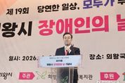 정안뉴스 안정주 기자 | 의왕시는 4월 21일 국민체육센터에서 관내 장애인과 가족, 내빈 등 1,000여 명이 참석한 가운데 ‘제19회 의왕시 장애인의 날 기념행사’가 성황리에 개최됐다고 밝혔다. 희망나래장애인복지관 주관한 이날 행사는 장애인의 날을 맞아 ‘당연한 일상, 모두가 누릴 수 있도록’이라는 표어 아래, 장애인과 비장애인이 함께 소통하는 화합의 장을 마련하고 더불어 살아가는 사회 분위기 조성을 위해 추진됐다. 이날 행사는 식전 축하공연으로 △농아인협회 의왕시지회 수어공연 △퓨전 플루티스트 서가비의 공연이 펼쳐졌으며, 이어 (사)경기도 신체장애인복지회 의왕시지회 김재진, 이지나 씨의 장애인 인권헌장 낭독과 기념식, 유공자 표창 등이 진행됐다. 특히, 으뜸 장애인상에서는 ‘모범장애인 부문’에 안광례 씨, ‘장애인봉사 부문’에 황순규 씨가 각각 수상해 큰 박수를 받았다. 또한, 장애인복지 유공자 시상에서는 △박미애(농아인협회) △강경아(희망나래장애인복지관) △권희선(의왕장애아재활치료교육센터) △김희수(해온장애인보호작업장) △김수종(의왕시청 노인장애인과) △우채운(의왕시장애인주간보호시설) △오은해