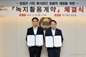정안뉴스 안정주 기자 | 인천 동구는 지난 25일 동원로엑스㈜(인천㈜ 대표이사 최안석)와‘녹지활용계약’을 체결했다고 밝혔다. 인천 최초로 진행된 이번 계약은 민간기업이 소유한 사유지를 주민에게 열린 녹지로 제공하는 새로운 방식의 민관 협력 모델이다. ‘녹지활용계약’은 ‘도시공원 및 녹지 등에 관한 법률’ 제12조에 근거한 제도로, 토지 소유자와 지자체가 계약을 통해 도시지역 내 식생이 양호한 사유지를 주민에게 제공할 수 있도록 하고 있다. 이번 계약 대상지는 동원로엑스가 소유한 인천 동구 만석동 2-252번지 내 약 9천100㎡(2천760평) 규모의 토지다. 해당 부지는 공시지가만 약 79억 원에 달하는 대규모 사유지로, 국유지 대부했다고 가정해보면 연간 약 1억 6천500만 원의 대부료가 발생된다. 이번 민관협력 모델에서는 동원로엑스가 이 토지를 무상으로 동구에 임대하면, 동구는 계약 면적에 대한 재산세를 감면하여 ‘건축법’상 의무 조경으로 인정하기로 했다. 계약기간은 최초 10년이며, 이후 5년 단위로 갱신이 가능하다. 동구는 해당 부지를 단순 개방에 그치지 않고, 주민들이 쾌적하게 이용할 수