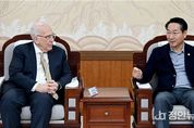 정안뉴스 안정주 기자 | 유정복 인천시장은 12월 3일 오후 인천시청 접견실에서 세계 최고 수준의 의과·바이오 연구 중심 대학인 존스홉킨스대의 조나단 슈넥(Jonathan schneck) 의과대학 교수(왼쪽) 일행을 접견했다. 이번 접견은 12월 4일 인천에서 ‘존스홉킨스대 글로벌 바이오 혁신 서밋’을 개최하게 됨에 따라, 이번 서밋을 주관한 존스홉킨스대학의 교수진과 다양한 협력 방안을 논의하기 위해 마련됐다. 유정복 인천광역시장(가운데), 조나단 슈넥 교수(왼쪽에서 세 번째), 김덕호 존스홉킨스 글로벌 생명공학 혁신 센터장(왼쪽에서 두 번째)는 ▲향후 인천을 거점으로 한 한-미 공동연구 및 바이오 혁신기술 산업화 방안 ▲존스홉킨스대 연구센터(R·D센터) 유치 등에 대한 논의를 이어갈 방침이다. 조나단 슈넥 존스홉킨스대 교수는 “송도를 중심으로 한·미 바이오 협력이 새로운 글로벌 혁신 모델로 정착하길 기대한다”라고 말했다. 유정복 인천시장은 “인천시는 세계적 연구기관과 글로벌 기업, 산업 협회와의 협력을 통해 연구개발부터 산업화, 글로벌 진출까지 연결되는 바이오 산업 생태계 조성을 적극 지원하겠다”