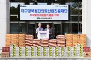정안뉴스 안정주 기자 | 대구경북첨단의료산업진흥재단은 지난 29일, 저소득 취약계층을 위해 10kg 백미 50포, 샤인머스켓 50박스, 라면 50박스, 간이소화기 50개를 동구청에 기탁했다. 이번 기탁은 재단 임직원들이 대구 동구의 동서시장을 방문해 명절 성수품과 생필품 등을 직접 구매한 후, 해당 물품을 동구청에 전달하는 방식으로 진행됐다. 기탁한 물품은 동구 내 취약계층과 복지 사각지대 이웃들에게 전달 될 예정이다. 박구선 이사장은 “작은 정성이지만 어려운 이웃들이 따뜻한 명절을 보내는 데 도움이 되기를 바란다”고 말했다. 윤석준 동구청장은 “추석을 맞아 이웃을 먼저 생각해주신 대구경북첨단의료산업진흥재단에 깊은 감사를 드린다”며 “기탁해주신 물품은 도움이 필요한 분들께 소중히 전달하겠다”고 했다.