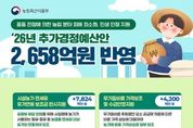 정안뉴스 안정주 기자 | 농림축산식품부는 2026년 추가경정예산안으로 총 2,658억원을 편성했다고 밝혔다. 이번 추가경정예산안에는 중동 전쟁으로 인한 요소 공급 차질, 농업용 면세유 가격 인상 등에 따른 농가 경영 부담을 경감하고, 소비자 장바구니 물가 부담 완화 등을 위해 ▲농가 유류비 부담 경감, ▲농업인, 소비자 등 민생 안정, ▲K-푸드 수출지원, ▲농지관리 기반 강화 등 분야에 총 8개 사업 2,658억원을 반영하였다. 중동 전쟁 영향으로 고유가가 지속되면서 경영비 중 난방비 비중이 높은 시설원예농가의 난방용 유류를 대상으로 유가연동보조금을 한시적으로 지원하기 위한 예산 78억원을 반영하였다. 동 사업을 통해 면세유 가격상승분을 유가와 연동하여 지원함으로써, 농가의 경영비 부담을 완화하고, 안정적으로 농산물이 생산·공급될 수 있도록 지원할 계획이다. 그간 중동 호르무즈 해협을 통해 무기질비료 주원료인 요소의 전체 수입량의 38.4%가 들어왔던 상황으로 무기질비료 가격이 상승할 것으로 예상된다. 이에, 선제적으로 농가에 무기질비료 구입가격 일부를 지원하기 위한 예산 42억원을 정부안에 반영하였다.