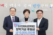 정안뉴스 안정주 기자 | 대구시교육청은 12월 4일, 대한기계설비건설협회 대구광역시회(회장 이민균)에서 대구인재육성장학재단에 장학금 1천만 원을 기탁했다고 밝혔다. 대한기계설비건설협회 대구광역시회는 힘든 여건 속에서도 꿈을 실현하기 위해 노력하는 학생들에게 도움을 주고자 협회 회원사들이 뜻을 모아 2023년부터 매년 장학금을 기탁해 오고 있다. 이민균 회장은 “어려운 환경에서도 학생들이 재능을 키워나갈 수 있도록 지원하는데 보탬이 되길 바란다.”는 뜻을 전했다. 강은희 교육감은 “건설경기 침체에도 불구하고 꾸준히 학생들을 위해 장학금을 기탁해주셔서 감사드리며, 지역 인재육성을 위해 최선을 다하겠다.”고 말했다.
