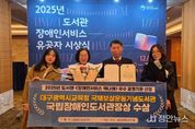 정안뉴스 안정주 기자 | 대구국채보상운동기념도서관이 ‘2025년 도서관 장애인서비스 유공자 시상식’에서 '2025년 도서관 장애인서비스 책나래 우수 운영기관'에 선정되어 ‘국립장애인도서관장’을 수상했다. 올해는 전국 1,183개 도서관을 대상으로 1년 간의 권역별 서비스 실적을 평가해 총 12개 기관이 선정됐다. ‘책나래서비스’는 도서관 방문이 어려운 장애인들의 지식정보 접근 격차 해소를 위해 도서관과 문화체육관광부가 연계하여 2011년부터 추진하고 있는 사업으로, 대출도서를 신청인의 자택까지 무료로 배달하여 많은 호응을 얻고 있다. 책나래서비스 이용을 원하는 희망자는 이용도서관 또는 책나래 누리집에서 회원가입 후 자료를 신청하면 1인당 10권의 도서를 30일 간 무료로 이용할 수 있다. 김동찬 관장은 “이번 수상을 계기로 도서관을 이용하기 힘든 정보소외계층의 도서관 이용 편의 증대와 지식정보 격차 해소를 위해 더욱 힘쓰겠다.”고 전했다.