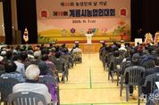 정안뉴스 황도연 기자 | 계룡시는 지난 7일 계룡시민체육관에서 성대한 분위기 속에 제30회 농업인의 날(11월 11일)을 기념하며 제19회 계룡시 농업인대회를 개최했다고 밝혔다. 농촌지도자 계룡시연합회 등 관내 5개 농업인 단체가 주관한 이번 행사는 이응우 시장을 비롯한 기관단체장, 농업인, 시민 등 500여 명이 참석한 가운데 한 해 동안 수고한 농업인들을 격려하는 화합의 장으로 마련됐다. 또한, 지역 농업 발전에 공헌한 농촌지도자회 서인식 회원 등 우수 농업인 5명에게 계룡시장 표창, 생활개선회 김효숙 회원 등 3명에게는 계룡시의회 의장 표창이 수여돼 그동안의 노력을 인정받는 뜻깊은 시간이 됐다. 이효택 농촌지도자 계룡시 연합회장은 “이번 행사가 농업인의 긍지와 자부심을 고취하고, 농업농촌의 소중함을 알리는 기회가 되길 기대한다”고 밝혔다. 이응우 시장은 “올 여름 극한 폭염 속에서도 묵묵히 영농에 종사해 주신 농업인들의 노고에 깊은 감사와 격려를 드린다”며 “지역농업의 발전과 농업인 복지 향상을 위해 다양한 정책과 지원을 아끼지 않겠다”고 말했다.
