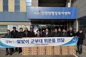 정안뉴스 안정주 기자 | 파주시 탄현면 이장협의회는 2월 4일과 6일 양일간 설 명절을 맞아 국토방위에 헌신하고 있는 육군 제9보병사단 등 4개 군부대에 위문품을 전달하고 국군장병들에게 감사의 마음을 전했다. 이날 전달식에서는 유재근 탄현면 이장협의회장을 비롯한 각 리 이장 20여 명이 참석한 가운데 음료 200상자의 위문품을 전달했다. 유재근 탄현면 이장협의회장은 “설 연휴에도 고향에 가지 못하고 국방의 의무를 다하는 국군장병들에게 조금이라도 위로가 됐으면 좋겠다”라며 “앞으로도 지속적인 유대관계를 위하여 노력하겠다”라고 말했다. 이태희 탄현면장은 “접경 지역 주민과 장병들의 한 사람 한 사람의 헌신적인 노력으로 주민들이 안심하고 일상생활을 할 수 있다”라며 “이번 설 명절을 맞이해 감사한 마음을 전할 수 있게 되어 기쁘다”라며 격려를 아끼지 않았다. 탄현면 이장협의회는 매년 설과 추석 명절에 군부대를 찾아 정기적으로 위문품을 전달하며 감사의 마음을 전하고 있다.