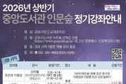 정안뉴스 안정주 기자 | 군포시중앙도서관은 시민의 인문학적 소양을 함양하고 공동체적 성찰의 기회를 확대하고자 ‘중앙도서관 인문숲’ 상반기 강좌를 운영한다. 이번 강좌는 3월과 5월 각 3강좌씩 6개 강좌로, 오전(10시)과 저녁(19시) 시간으로 나누어 진행된다. 각 강좌는 주제별로 4~8회차의 연속 강의로 운영해 시민들이 한 주제를 체계적으로 이해하고 인문학적 사고를 확장을 도울 예정이다. 3월에는 신익철 강사의 '조선의 사회상', 우응순 강사의 '시경', 그리고 이상민 강사의 '아는만큼 보이는 궁궐이야기' 강의를 통해 한국학, 동양철학, 한국사의 견문을 넓히고, 5월에는 김선아 강사의 '역사를 움직인 지배자들', 박영대 강사의 '책임의 생성', 문효정 강사의 '작가로 읽는 현대미술' 강의를 통해 서양 근대사, 서양철학, 현대미술의 견문을 넓히는 시간을 제공한다. 각 강좌별 참여자 모집 인원은 선착순 40명이며, 3월 개강 강좌는 2월 23일, 5월 개강 강좌는 4월 1일부터 모집을 시작하며, 군포시도서관 홈페이지에서 신청할 수 있다.