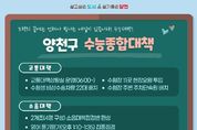 정안뉴스 안정주 기자 | 양천구는 오는 13일 실시되는 ‘2026학년도 대학수학능력시험’에 응시하는 관내 수험생 5천8백여 명을 위한 교통·소음·안전 등 전방위 수능 종합대책을 마련하고 본격적인 지원에 나선다. 구는 수험생들이 최적의 환경에서 시험에 응시할 수 있도록 수험장 주변 소음 방지 대책을 강화했다. 2개조 4명으로 구성된 소음대책점검반을 편성해 12일까지 수험장 주변 사전실태조사를 실시하고, 소음 유발 요인을 점검·조치할 예정이다. 또 관내 모든 건축공사장과 도로굴착공사를 주관하는 유관기관에 소음 방지 협조공문을 발송하고, 예비소집일과 시험 당일에는 소음 발생 공사를 중지하거나 자제하도록 요청했다. 특히 철저한 소음 차단이 요구되는 ‘3교시 영어 듣기평가(오후 1시 10분~1시 35분)’ 시간대를 집중 점검 구간으로 정해, 현장 통제에 만전을 기할 방침이다. 수험생의 안전한 이동을 위해 ‘특별 교통대책반’을 구성하고, 긴급 상황에 신속히 대응할 수 있도록 수능 당일 새벽 6시부터 교통상황실을 운영한다. 교통 혼잡으로 지각하는 일이 없도록 비상수송 차량 22대(구청 4대, 동 1