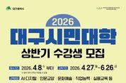 정안뉴스 안정주 기자 | 대구광역시는 시민의 평생학습 기회를 확대하고 변화하는 학습 수요를 반영해 4월 8일부터 ‘2026년 상반기 대구시민대학’ 수강생을 모집한다. 이번 상반기 시민대학은 4월 27일부터 6월 26일까지 약 2개월간 운영되며, 시민이 직접 제안한 21개 강의와 5개 기획 강의 등 총 26개 강좌로 구성됐다. 강좌는 인공지능(AI)·디지털, 인문교양, 문화예술, 직업능력, 실용교육 등 시민의 일상과 밀접한 다양한 분야를 아우르며, 참여형·체험형 교육을 강화해 실질적인 학습 효과를 높였다. 주요 강좌로는 ▲AI와 함께하는 나만의 인생 영상 ▲신중년 경력 설계 수립의 다양한 사례 이해 ▲백세시대의 자연치유 건강법 ▲색연필 보타니컬아트 ▲생활 속 아로마테라피 DIY 클래스 등이 있다. 특히 올해는 강좌별 운영 횟수를 기존 3회에서 5회로 확대해 학습의 연속성을 높이고, AI 대전환 흐름에 맞춰 관련 강좌를 기초·심화 단계로 세분화해 수준별 맞춤 교육이 가능하도록 설계했다. 또한 교육 장소를 대구평생교육진흥원 대구지식발전소(북구 연암로 40, 산격청사)뿐 아니라 외부 교육장