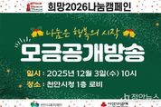 정안뉴스 황도연 기자 | (재)천안시복지재단은 내달 3일 희망2026나눔캠페인 공개모금행사 ‘나눔으로 하나되는 따뜻한 천안’을 연다고 28일 밝혔다. 천안시·천안시복지재단·충남사회복지공동모금회가 함께하는 이번 행사는 시청 로비에서 오전 10시부터 12시까지 진행되며, 유튜브를 통해 생중계될 예정이다. 기부는 재단 연합모금계좌로 참여할 수 있으며, 기부자는 세액공제 혜택을 받을 수 있다. 행사를 통해 모금된 성금은 위기가정의 생계비 및 의료비 지원 등 사회적 안전망 강화와 복지기관의 다양한 복지사업에 사용될 예정이다. 재단은 충남사회복지공동모금회와 함께하는 집중모금 기간인 내년 1월 31일까지 시민들의 나눔 참여가 이뤄질 수 있도록 독려할 계획이다. 이운형 천안시복지재단 이사장은 “어느 때보다 경기침체로 힘든 상황이지만 이럴 때 일수록 소외된 이웃을 돌아보고, 나눔 문화 확산에 함께해 주시길 바란다”고 말했다.
