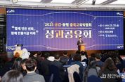 정안뉴스 황은경 기자 | 충청북도교육청은 15일 14시, 엔포드 호텔에서 2025. 공감‧동행 충북교육박람회 성과공유회를 개최했다. 행사에는 도교육청 및 직속기관, 교육지원청, 각급 학교와 유관기관 관계자, 부스 및 프로그램 운영 담당자, 자원봉사자 등 총 300여 명이 참석했다. 성과공유회는 지난 10월 22일(수)부터 26일(일)까지 5일간 교육문화원과 생명누리공원에서 열린 충북교육박람회의 주요 성과와 우수 사례를 공유하고 향후 발전 방향을 모색하기 위해 마련됐다. 특히, 박람회가 성공적으로 운영될 수 있도록 기획‧운영‧자원봉사 등 다양한 현장에서 헌신한 참여자들의 노고를 함께 돌아보고 감사의 마음을 나누는 자리였다. 성과 공유회는 '함께 만든 변화, 함께 여는 미래'를 주제로 축하공연, 1부 성찰과 공유, 2부 미래 설계 순으로 진행됐다. 축하공연에서는 '몸활동 꿈끼페스티벌 경연 한마당'에서 우수한 성과를 거둔 모충초등학교 9명 학생의 댄스 공연과 내곡초등학교 21명 학생의 합창 공연이 펼쳐졌다. 1부에서는 ▲충북교육박람회 영상 다시보기 ▲준비부터 운영까지 전 과정에