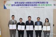 정안뉴스 황은경 기자 | 청주시는 15일 상당‧서원 정신건강복지센터 및 중독관리통합지원센터 위‧수탁 협약을 체결하고 지역사회 중심의 정신건강 관리체계 강화에 나섰다. 이날 임시청사 직지실에서 개최된 협약식에는 이범석 청주시장과 김원섭 충북대학교병원장, 김영규 충청북도 청주의료원장이 참석했다. 이번 협약은 지역주민의 정신건강 증진과 생명 존중 문화 확산, 정신질환 및 중독 문제의 예방과 조기 발견, 상담·치료·재활 및 사회복귀 지원을 위해 추진됐다. 상당정신건강복지센터 수탁기관으로는 충북대학교병원이 선정됐으며, 서원정신건강복지센터와 중독관리통합지원센터는 충청북도 청주의료원이 맡게 됐다. 해당 기관들은 2026년 1월 1일부터 2030년 12월 31일까지 각 센터를 운영‧관리하며, 지역사회 기반 정신질환자 관리체계 구축과 함께 중독 예방 및 조기 발견 체계를 강화해 종합적인 정신건강 서비스를 제공할 예정이다. 이범석 청주시장은 “이번 위‧수탁 협약을 통해 지역사회 정신건강 관리체계를 더욱 공고히 하고, 시민들이 필요로 하는 전문적인 정신건강 서비스를 안정적으로 제공하겠다”며 “앞으로도 민‧