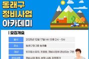 정안뉴스 황정혜 기자 | 부산 동래구는 오는 12월 17일 오후 2시, 동래구청 2층 동래홀에서 재개발 및 재건축 정비사업에 대한 주민들의 이해를 높이고 추진 과정에서 발생할 수 있는 분쟁을 예방하기 위해 ‘2025년 동래구 정비사업 아카데미’를 실시한다고 밝혔다. 이번 교육은 조합 임원, 조합원, 토지 등 소유자 그리고 일반 주민을 대상으로 관련 분야 전문가를 초빙해 50분씩 총 3부로 진행된다. △1부에서는 한눈에 들어오는 정비사업의 이해 및 절차 △2부에서는 '도시 및 주거환경정비법' 관련 계약 및 분쟁 사례 △3부에서는 정비사업과 관련한 감정평가의 이해를 주제로 교육이 이어질 예정이다. 아카데미 참석을 희망하는 주민은 별도의 수강 신청 없이 당일 현장 참여가 가능하며, 자세한 사항은 동래구 건축과로 문의하면 된다.