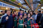 정안뉴스 안정주 기자 | 이재명 대통령은 30일 오후 제주 타운홀미팅 '제주의 마음을 듣다' 종료 후, 김혜경 여사와 함께 1박 2일 제주 일정의 마지막 일정으로 동문시장을 방문했다. 동문시장은 제주시 도심에 위치한 대표적인 전통시장으로, 대통령 부부의 방문 소식에 상인들과 방문객들은 놀라움 속에 환호와 박수로 이들을 맞이했다. 입구에 서 있던 한 외국인 관광객은 어디서 왔냐는 이 대통령의 질문에 “오스트레일리아”고 답하기도 했다. 이 대통령 부부는 셀카촬영과 악수를 이어가며 과일모찌 가게에 들러 온누리상품권으로 한라봉모찌와 딸기모찌를 구입해 즉석에서 강유정 대변인, 하정우 수석 등과 함께 시식했다. 이동 내내 이어지는 셀카요청에도 이 대통령 부부는 반갑게 응했다. 그러자 시장을 찾은 많은 도민들은 이동 중인 이 대통령 부부를 향해 "사랑해요", "와 대박", "화이팅"을 외치는 소리로 화답했다. 이 대통령은 특히 어린이들의 사진 요청에 적극적으로 답했다. "애기 있어요"라는 소리가 들리면 발걸음을 멈추고 아이들과 하이파이브를 하거나 반갑게 셀카를 찍었다. 또한 강아지를 안