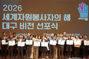 정안뉴스 안정주 기자 | 대구광역시는 3월 23일 오후 2시, iM뱅크 제2본점에서 대구광역시자원봉사센터와 함께 ‘2026년 세계자원봉사자의 해 대구비전 선포식’을 성황리에 개최했다. 이번 선포식은 유엔(UN)이 2001년 이후 25년 만에 다시 지정한 ‘2026 세계자원봉사자의 해’를 맞아 대구만의 차별화된 자원봉사 모델을 구축하고 새로운 도약을 선언하기 위해 마련됐다. 대구시는 전국 최초로 6년 연속 자원봉사 우수도시로 선정되는 등 자원봉사 선도도시로서의 위상을 이어가고 있다. 특히 올해는 전국 최초로 설립된 대구시자원봉사센터가 개소 30주년을 맞는 뜻깊은 해로, 지난 성과를 돌아보고 미래 30년의 청사진을 제시하는 데 중점을 뒀다. 이날 행사에는 안중곤 대구시 행정국장, 윤영애 대구시의회 기획행정위원회 위원장, 홍정우 행정안전부 민간협력공동체과장을 비롯해 한국중앙자원봉사센터 등 100여 개 유관기관 관계자와 자원봉사자 350여 명이 참석했다. 행사는 홍보영상 상영을 시작으로 ▲개회식 ▲비전 선언문 낭독 ▲선포 퍼포먼스 ▲축하공연 순으로 진행됐다. 참석자들은 선언문을 함께 낭독하며 자원봉사의 사