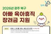 정안뉴스 안정주 기자 | 광주광역시 북구가 육아휴직 중인 남성에게 최대 90만 원의 장려금을 지급한다. 25일 북구에 따르면 오는 26일부터 ‘2026년 아빠 육아휴직 장려금’ 신청이 시작된다. 이번 사업은 양육 친화 환경을 조성하고 휴직에 따른 경제적 부담을 완화하기 위해 지난해 북구가 광주에서 처음으로 시행한 육아 지원 정책이다. 올해는 5,400만 원의 예산을 투입해 60여 명에게 장려금을 제공할 계획이다. 지원 대상은 2025년 1월 1일 이후 육아휴직자 중 휴직 시작일 이후 1개월 이상 또는 종료 후 12개월이 지나지 않은 남성이다. 또한 고용보험법에 따른 육아휴직 급여 지급 대상이면서 신청일 기준 6개월 이상 북구에 주민등록을 두고 있어야 하고 아동도 북구 주민이어야 한다. 다만, 육아휴직급여 특례 적용 대상자(6+6육아휴직)는 특례 기간이 종료된 달의 다음 달부터 신청할 수 있다. 장려금 신청은 정부24를 통한 온라인 신청만 가능하고 오는 26일부터 예산 소진 시점까지 지원자를 선착순 모집한다. 최종 선발된 지원 대상자에게는 매월 30만 원씩 최대