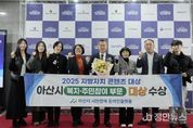 정안뉴스 황도연 기자 | 아산시가 27일 국회의원회관 대회의실에서 열린 ‘2025 지방자치 콘텐츠대상’에서 기초자치단체 복지·주민참여 부문 대상을 수상했다. ‘지방자치 콘텐츠대상’은 지방자치TV, 한국지방행정연구원, 한국지방자치학회, 인문콘텐츠학회가 공동 주관하고 행정안전부, 국회 행정안전위원회 등이 후원한다. 아산시는 △시민 맞춤형 행정서비스 △지속 가능한 디지털 참여 생태계 조성 △혁신 기반 소통 플랫폼 운영으로 높은 평가를 받았다. 이러한 성과는 아산시가 지역 주민의 삶의 질을 향상시키는 정책을 지속적으로 추진하고 있음을 입증했다. 김범수 부시장은 “시민 참여를 행정의 중심에 두는 소통 기반으로 다양한 시민 의견을 폭넓게 수렴하는 참여 행정을 강화해 나가겠다”고 말했다.