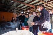 정안뉴스 황은경 기자 | 충북 증평군의 대표 농촌체험휴양마을인 장이익어가는마을(위원장 이금노)이 지난 27~28일 말레이시아와 독일 관광객을 대상으로 K-문화 체험 프로그램을 운영하며 큰 호응을 얻었다. 이번 프로그램은 외국인 관광객들이 한국의 전통문화를 오감으로 느낄 수 있도록 기획됐으며 △삼계탕 만들기 △투호놀이 △바람떡 만들기 등 다양한 체험이 진행됐다. 특히 참가자들은 쌀쌀한 가을 날씨 속에서 커다란 가마솥에 닭, 인삼, 대추, 마늘을 직접 넣어 끓이는 삼계탕 조리 과정에 참여하며 한국 고유의 ‘정(情)과 온기’가 깃든 음식문화를 생생하게 체험했다. 뜨거운 김이 피어오르며 퍼지는 고소한 냄새 속에 참가자들은 “한국의 정(情)이 몸으로 전해지는 느낌”이라며 웃음을 보였다. 이금노 위원장은 “한국의 음식, 놀이, 가옥 등 다양한 문화자원이 외국 관광객에게 깊은 인상을 줬다”며 “앞으로도 K-의식주 문화를 세계에 알리는 글로벌 농촌체험휴양마을로 발전해 나가겠다”고 밝혔다. 한편, 장이익어가는마을은 장(醬)과 전통음식 문화를 테마로 한 다양한 체험 프로그램을 운영하며, 매년 외국인 관광