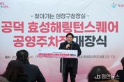 정안뉴스 안정주 기자 | 박강수 마포구청장은 12월 3일 오후 5시, 공덕역 10번 출구 앞 광장에서 열린 ‘공덕 효성해링턴스퀘어 공영주차장 개장식’에 참석해 시설 개장을 축하했다. 이번에 문을 연 공덕 효성해링턴 스퀘어 공영주차장(도화동 25-13)은 총 21면 규모로 조성된 거주자우선주차장으로, 구는 공공기여를 통해 확보한 이 공간을 주민들에게 개방해 운영하기로 했다. 아파트와 상가, 오피스가 밀집한 도화동·공덕동 일대는 주차 수요에 비해 공간이 부족해 주민과 방문객 모두가 지속적인 불편을 겪어 왔다. 이번 공영주차장 운영을 통해 지역에서 꾸준히 제기돼 온 주차 불편이 상당 부분 해소될 것으로 기대되며, 생활권 내 주차 편의도 한층 개선될 전망이다. 행사는 식전 공연을 시작으로 개회 및 내빈소개, 경과보고에 이어 박강수 마포구청장의 기념사가 진행됐으며, 이어 테이프 커팅과 기념촬영 후 시설 라운딩이 이어졌다. 추운 날씨 속에서도 박강수 마포구청장을 비롯해 백남환 구의회 의장, 지역 주민 등 약 100여 명이 참석해 주차 공간 확충의 성과를 함께 축하했다. 박강수 마포