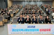 정안뉴스 황은경 기자 | 충북 괴산군(군수 송인헌)은 중원대학교 상생홀에서 2025년 괴산군지역사회보장협의체 성과공유회를 개최했다고 4일 밝혔다. 성과공유회에는 송인헌 군수를 비롯해 대표협의체, 실무협의체, 6개 실무분과, 11개 읍·면 협의체 위원 등 120여 명이 참석했다. 행사에서는 우수 활동을 펼친 읍·면 협의체와 실무분과 소속 위원 등 17명에게 군수 표창이 수여됐으며, 협의체 주요 사업 사례 발표와 특강이 이어졌다 주요 사례로는 괴산군수어통역센터 김가령 통역사가 ▲장애인 지원사업인 수어통역사의 떴다떴다 비행기 제주도 여행을 칠성면행정복지센터 김미경 주민복지팀장이 ▲칠성면 지역사회보장협의체 활동 괴산지역아동센터 이윤숙 센터장이 ▲아동청소년분과 운영 및 지역아동센터 캠프 지원 등 3건을 발표했다. 또한 구미대학교 스포츠지도과 이상빈 교수의 건강 마사지 특강이 진행돼 위원들의 심신을 다독이는 시간도 마련됐다. 송인헌 군수는 “괴산군 복지의 중심에는 협의체 위원들의 성실한 활동이 있었다”며 “내년에도 군민이 진정으로 필요한 지원이 이뤄질 수 있도록, 협의체와 함께 따뜻한 복지행정을