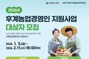 정안뉴스 김재홍 기자 | 사천시가 오는 2월 11일까지 2026년 후계농업경영인 육성사업 대상자를 모집한다고 14일 밝혔다. 신청 자격은 사천시에 거주하는 만 18세 이상 50세 미만의 예비농업인으로, 독립 경영 경험이 10년 미만이거나 독립 경영 예정자이며, 병역을 필하거나 면제된 사람이다. 사업 신청은 처세대농림사업정보시스템(농업e지)을 통해 온라인으로 가능하며, 서류 평가와 평가 검증을 거쳐 2026년 4월 중 최종 결과가 발표될 예정이다. 후계농업경영인 육성사업은 선정된 농업인에게 최대 5억원의 융자 지원을 제공하고, 선정된 후계농의 영농 경영 및 역량강화를 위한 교육프로그램도 지원한다. 자세한 사항은 사천시 홈페이지에 게시된 시행 지침을 참고하거나, 사천시 미래농업과 인력육성팀으로 문의하면 된다. 박동식 시장은 "미래 농업을 이끌어 갈 후계농업경영인들이 본 지원사업을 적극 활용해 안정적으로 영농에 정착할 수 있도록 최선을 다해 지원하겠다"고 말했다. [뉴스출처 : 경상남도 사천시]