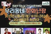 정안뉴스 황은경 기자 | 충북 괴산군은 ‘문화가 있는 날’ 주간을 맞아 오는 11월 1일 오후 6시부터 괴강불빛공원 특설무대에서 ‘문화가 있는 날 구석구석 문화배달 '우리동네 문화난장'’ 8회차 행사를 개최한다고 밝혔다. 이번 공연은 올해 마지막으로 진행되는 '우리동네 문화난장' 행사로, 깊어가는 가을밤 군민들에게 흥겨운 문화예술 향연을 선사할 예정이다. 특히 ‘내 나이가 어때서’로 널리 알려진 트로트 가수 오승근을 비롯해 쌍둥이 개그맨에서 트로트 가수로 활동 중인 상호·상민, 퓨전국악밴드 케이소리, 괴산군 홍보대사 가수 강민과 신명화, 그리고 괴산읍두레풍장놀이패의 전통놀이 공연까지 다채로운 무대가 펼쳐질 예정이다. 군은 올해 4월 괴산시장을 시작으로 청안, 칠성, 덕평, 소수 등 군내 8개 지역에서 '우리동네 문화난장'을 운영하며 전통시장, 체육관, 공원 등에서 품바, 비보이, 마술, 주민노래자랑 등 다채로운 공연을 통해 군민들의 큰 호응을 얻었다. 특히 이번 8회차는 2025년 마지막 공연인 만큼, 군은 현장을 찾은 군민들을 위해 선착순 400명에게 무릎담요를 증정할 예정이다. 김춘