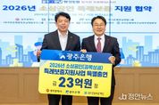 정안뉴스 안정주 기자 | 광주은행은 22일 광주광역시청에서 강기정 광주광역시장, 정일선 광주은행장, 염규송 광주신용보증재단 이사장 및 관계자가 참석한 가운데 ‘2026년 소상공인 특례보증 대출 지원사업 협약’을 체결했다고 밝혔다. 이번 협약을 통해 광주은행은 고금리와 경기침체 등으로 어려움을 겪는 광주지역 소상공인(골목상권)에 대한 금융지원 확대를 위해 23억 원을 특별출연했다. 이를 재원으로 광주신용보증재단은 총 466억 원 규모의 특례보증을 지원하며, 광주광역시는 1년간 3~4%의 이차보전을 지원할 계획이다. 소상공인 특례보증 융자 지원 대상은 유흥·도박·사행성 업종 등 일부 업종을 제외한 광주지역 소재 소기업·소상공인·자영업자 전 업종이며, 업체당 최대 5천만 원까지 지원받을 수 있다. 대출 기간은 7년 이내다. 보증 신청은 오는 26일부터 광주은행 ‘Wa뱅크’ 앱과 광주신용보증재단 ‘보증드림’ 앱을 통한 비대면 방식으로 가능하다. 비대면 신청이 어려운 경우에는 광주신용보증재단 영업점을 방문해 대면 신청도 가능하다. 한편 광주은행은 2020년부터 현재까지 광주광역시 소상공인(골목상권)을 위해