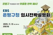 정안뉴스 안정주 기자 | 서울 은평구는 한국교육방송공사(EBS)와 협력해 오는 15일 은평구청에서 'EBS와 함께하는 은평구 입시전략설명회'를 개최한다고 밝혔다. 이번 설명회는 공교육 기관인 EBS와의 파트너십을 통해 신뢰도 높은 입시 정보를 제공하고, 사교육 의존도를 낮추며 교육격차를 해소하기 위해 마련됐다. 수험생들의 입시전략을 위해 프로그램은 ▲2027학년도 입시 대비 학습전략 특강 ▲2026학년도 정시 대비 1:1 특별 대입 상담 총 두 가지로 구성된다. 상담은 80명을 대상으로 한다. 특강은 이날 오후 2시부터 5시까지 은평구청 5층 은평홀에서 진행된다. 특강에서는 현재 고2 학생 300명을 대상으로 EBS 대표강사 2명이 수능과 내신 국어 학습전략을 설명하고 2027학년도 대입 지원 전략을 안내한다. 1:1 특별 대입 상담은 은평구청 6층 기획상황실에서는 오후 2시부터 6시까지 EBS 진학상담 전문교사 10명이 고3 학생과 N수생 80명을 대상으로 수능 성적에 기반한 1:1 맞춤형 상담을 제공한다. 참가하려면 오는 12일 오후 6시까지 ‘은평배움모아’ 누리집을 통해 온라인으로