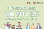 정안뉴스 안정주 기자 | 광주 동구는 주민 주도의 인문 공동체를 육성하고 인문도시 역량을 강화하기 위한 ‘2026년 인문동아리 지원사업’ 참여 동아리를 오는 15일까지 모집한다고 밝혔다. 이번 사업은 인문도시를 지향하는 동구가 2020년부터 추진해 온 주민 참여형 사업으로, 다양한 독서 기반 활동을 통해 일상 속 인문 가치 확산과 독서문화 진작을 목표로 하고 있다. 특히 책을 함께 읽고 토론하는 인문독서 동아리는 개인의 사유를 확장하고 타인과의 공감·소통을 이끄는 생활 속 인문 실천의 장으로 주목받고 있다. 동구는 이러한 자발적 독서공동체를 통해 사회적 공감대를 형성하고 지역의 다양한 문제를 함께 성찰하는 인문도시를 구현해 나간다는 방침이다. 신청 대상은 광주 동구 관내에서 활동하는 청년·직장인·주민 등 5인 이상으로 구성된 소모임이다. 월 1회 이상 정기적으로 모임을 운영해야 하며, 독서 토론·글쓰기·낭독 등 책을 기반으로 한 다양한 활동을 수행하는 동아리면 신청할 수 있다. 접수 기간은 이달 15일까지이며, 동구청 누리집에서 신청서 등 필요한 서류를 내려받아 이메일로 제출하거나 동구청 인문도시정