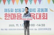 정안뉴스 안정주 기자 | 서울 성동구는 지난 11월 1일 살곶이체육공원에서 성동구 아파트 단지들이 한자리에 모여 ‘제5회 아파트공동체 한마음 체육대회’를 성황리에 개최했다. 올해로 5회째를 맞는 이번 체육대회는 성동구 아파트공동체 활성화단체 연합회(성아공 연합회)가 중심이 된 아파트공동체 한마음 체육대회 추진위원회 주관으로 진행됐으며, 성동구청과 각 아파트 공동체 활성화단체가 협력하여 원활한 행사 진행을 지원했다. 성동구가족센터, 옥수종합사회복지관 등 관내 복지시설에서는 다양한 체험부스 등을 운영했다. 체육대회는 관내 32개 아파트에서 약 650명의 입주민이 참여하여, 각기 다른 아파트 단지 주민들이 4개의 팀을 이뤄 협력과 경쟁을 즐기는 방식으로 진행됐다. 참가자들은 풍선 기둥 만들기, 한마음 공굴리기 등 가족과 이웃들이 함께 즐길 수 있는 스포츠 종목에 참여도 하고, 입주민 장기 자랑, 아이들을 위한 키즈존, 푸드트럭 등 다양한 볼거리, 먹을거리 등으로 즐거운 시간을 보냈다. 특히, 이번 체육대회는 단순히 스포츠를 즐기는 것을 넘어, 아파트 단지 내 주민들 간의 유대감을 깊게 만드는 기회가 됐다. 경기가 진