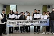 정안뉴스 안정주 기자 | 대구 동구청은 지난달 31일 동구청년센터에서 ‘청년 창업기업 사무실 임차료 지원사업’ 선정 기업들과 협약을 체결하고 본격적인 지원에 나섰다. 임차료 지원사업은 공모를 통해 관내 7년 이내 초기 창업기업 9개사를 최종 선정했으며, 선정 기업들은 최대 10개월간 50만원 한도 내에서 월 임차료의 50%를 지원받게 된다. 임차료 지원 사업은 아이디어와 기술력을 보유하고도 초기 자본 부족과 고정비 부담으로 어려움을 겪는 청년 창업가들에게 월 임차료의 일정 부분을 지원해 폐업률을 낮추고 성장을 돕는 맞춤형 지원 정책이다. 지난해 처음 시행돼 15개 창업기업을 지원했으며, 청년 창업가들이 절감된 비용을 사업에 재투자해 기업 경쟁력을 강화하기도 했다. 김태운 동구청장 권한대행은 “청년들이 우리 지역 사회에 안착하고 성공적인 창업가로 성장할 수 있도록 꾸준히 돕겠다”고 말했다.