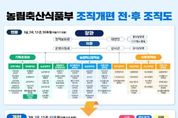 정안뉴스 안정주 기자 | 농림축산식품부는 농정을 혁신하고 국민주권정부의 농정 비전인 ‘국민과 함께하는 농업, 희망을 실현하는 농촌’ 조기 구현을 뒷받침하기 위해 조직을 확대․개편한다. 농식품부는 이번 조직 개편을 통해 1관 신설, 1국(관) 대체 신설, 21명 증원함으로써 기존 3실, 2국‧12관, 59과‧팀에서 3실, 3국‧12관, 62과‧팀 체계로 확대되며, 2017년 방역정책국 신설(순증), 2022년 동물복지환경정책관 신설(대체신설) 이후 3년여 만에 대규모 조직개편을 단행하게 됐으며, 세부 내용은 다음과 같다. ❶ 농어촌 기본소득, 농촌 에너지 전환을 전담하는 ‘농촌소득에너지정책관’(국장급)을 신설한다. 신설되는 농촌소득에너지정책관에 기존 공익직불정책과‧재해보험정책과‧농촌탄소중립정책과를 이관하면서, 과 명칭을 변경하고 2개 팀을 신설하여 농촌소득정책과‧농업정책보험과‧농촌에너지정책과‧농업재해지원팀‧농촌탄소중립추진팀으로 확대‧개편한다. 이를 통해 소멸 위기 농어촌 지역의 활력을 제고하기 위한 농어촌 기본소득 시범사업과 농촌의 재생에너지 확산을 위한 햇빛소득마을 조성, 영농형태양광 제도화 등