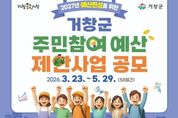 정안뉴스 김재홍 기자 | 거창군은 3월 23일부터 5월 29일까지 예산 편성 과정에 주민의 의견을 실질적으로 반영하고 지역에 필요한 사업을 직접 제안할 수 있는 ‘2027년 주민참여예산 제안사업 공모’를 추진한다. 올해는 전년 대비 1억 원이 증액된 총 30억 원 규모로 운영되며, 내실 있는 주민 의견을 더 효과적으로 반영하고자 일반공모형(4개), 지역회의형(1개)으로 공모유형을 구분해 시행한다. 일반공모형(21억 원)은 △군정 아이디어 제안(6억 원) △체류관광 활력증대(5억 원) △복지안전 생활강화(5억 원) △미래세대 발상실현(5억 원) 등 군민 생활과 밀접한 사업을 집중 발굴하고, 지역회의형(9억 원)은 읍면 주민자치회를 대상으로 지역 특성에 맞는 지역맞춤형 사업을 발굴할 예정이다. 특히, 올해는 주민 참여를 독려하고 우수 제안을 발굴하기 위해 인센티브 제도를 확대 운영한다. 지난해 관련 조례 개정을 통해 법적 근거를 마련했으며, 이에 따라 우수제안자로 선정되거나 공모 참여자 중 추첨을 통해 소정의 거창사랑상품권을 지급할 계획이다. 공모 신청은 거창 군민이면 누구나 가능하며