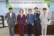 정안뉴스 안정주 기자 | 대구광역시 남구의회 의원연구단체 ‘대구 남구 살림살이 연구회’는 10월 22일 남구의회 제2소회의실에서 ‘대구 남구 재정 운용 효율성 및 효과성 분석 연구’ 최종보고회를 개최했다. 이번 연구는 지난 6월부터 진행됐으며, 남구 재정의 구조적 문제를 다각도로 검토하기 위해 9월 중간보고회를 열고, 경기도 광명시의 우수사례를 비교·분석하는 등 현장 중심의 검토 활동을 이어왔다. 이날 보고회에서는 중간보고에서 제시된 건의사항과 선진사례 분석 결과를 종합한 최종보고서 내용이 발표됐으며, 남구 재정운용의 효율화 방안을 주제로 심도 있는 토론이 진행됐다. 연구단체 구성 의원들은 “이번 연구용역을 통해 남구 재정의 현황과 개선 방향을 구체적으로 확인할 수 있었다”며, “의회의 감시와 견제 기능을 강화해 구민의 눈높이에 맞는 합리적 예산 운영이 이루어지도록 노력하겠다”고 밝혔다. 강민욱 연구단체 대표의원은 “지방재정은 단순한 숫자의 조정이 아니라 지역의 미래를 설계하는 전략적 수단”이라며, “이번 연구를 통해 구조적 문제를 진단하고 구민이 체감할 수 있는 효율적 재정운용 방향을 마련해, 지