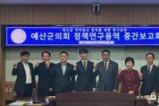 정안뉴스 황도연 기자 | 예산군의회는 25일 의회 문화강좌실에서 '예산군 자치법규 정비를 위한 연구모임' 정책연구용역 중간보고회를 개최했다. 이날 보고회에는 연구모임 대표의원인 김영진 의원을 비롯하여 임종용·이길원·김태금 의원과 군청 관계자·외부 전문가 및 연구수행기관 등이 참석했다. 이어 예산군 자치법규 정비를 위한 연구용역 수행기관은 그동안 진행해 온 주요 내용 및 진행 상황을 보고하며 의견수렴의 시간을 가졌다. 김영진 대표의원은 “남은 기간 동안 더욱 심도 있는 검토와 논의를 통해 연구용역의 완성도를 높이고, 예산군 자치입법 역량에 실질적으로 기여할 수 있도록 하겠다”고 밝혔다. 예산군의회는 앞으로도 정책연구와 입법역량 강화를 위해 지속적인 연구 활동을 이어갈 계획이다.