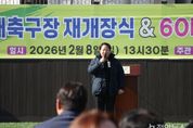 정안뉴스 안정주 기자 | 남양주시는 지난 8일 진접읍 부평리 소재 크낙새축구장에서 재개장식을 개최하고, 지역 생활체육 활성화의 새로운 출발을 알렸다고 9일 밝혔다. 이번 재개장식은 노후화된 축구장 시설을 정비해 시민에게 보다 안전하고 쾌적한 체육 환경을 제공하고, 지역 생활체육 저변 확대를 도모하기 위해 마련됐다. 이날 행사에는 주광덕 남양주시장을 비롯해 도·시의원, 진접읍 유관단체장, 진접축구협회 관계자와 지역 주민, 축구 동호인 등 200여 명이 참석했다. 재개장식은 개회 선언을 시작으로 내빈 소개, 국민의례, 경과보고, 환영사 및 축사, 기념촬영 순으로 진행됐다. 이어 60대 상비군 시무식을 함께 열어 지역 생활체육 발전을 다짐하는 시간을 가졌다. 크낙새축구장은 이번 정비사업을 통해 인조잔디 교체와 관람석 정비, 조명시설 개선 등 전반적인 시설 개선을 완료했다. 시는 이를 통해 이용 안전성을 높이고 시민 누구나 편리하게 이용할 수 있는 체육시설로 재정비했다. 주광덕 시장은 축사를 통해 “새롭게 단장한 크낙새축구장이 지역 주민 모두의 건강과 화합을 키워가는 공간으로 거듭나게 돼 매우