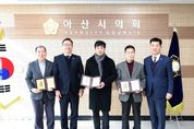 정안뉴스 황도연 기자 | 아산시의회는 26일 오전 11시, 의장실에서 ‘제6기 의정자문위원회 간담회’를 열고 임기 동안 헌신한 위원들에게 감사패를 수여하며 그간의 활동을 마무리하는 시간을 가졌다. 이날 간담회에는 홍성표 의장과 맹의석 부의장을 비롯해 임기 만료를 앞둔 제6기 의정자문위원회의 정재호 부위원장, 임헌창 위원, 박종식 위원 등이 참석했다. 이번 간담회는 제6기 의정자문위원의 공식 임기 종료를 앞두고, 그동안 아산시의회의 전문성 강화와 지역 현안 해결을 위해 아낌없는 자문과 정책 제안을 이어온 위원들의 노고에 감사를 표하기 위해 마련했다. 수여된 감사패에는 의정 현안에 대한 깊이 있는 분석과 정책 개선안 제시를 통해 시의회의 위상을 높이고, 지역사회 발전에 기여한 위원들의 공로가 담겼다. 간담회에 참석한 위원들은 “시민의 목소리를 의정에 반영하기 위해 함께 고민했던 지난 시간이 매우 뜻깊었다”며 “비록 임기는 만료되지만, 앞으로도 아산시의 발전과 시의회의 행보를 늘 응원하며 시민의 한 사람으로서 힘을 보태겠다”고 소회를 밝혔다. 홍성표 의장은 “각계각층의 전문가로서 위원님들이